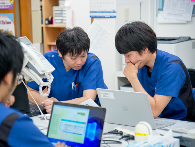 当法人では、回復期病院、脳・整形、スポーツ整形、一般整形、クリニック、在宅(訪問リハ・通所リハ)、さらに介護老人保健施設などを有しています。そのため、特に若い間はローテーション勤務で様々な分野を経験し、急性期から回復期、生活期から予防まで、幅広い疾患や時期でのリハビリテーションに関わることで多くの経験を積むことができます。