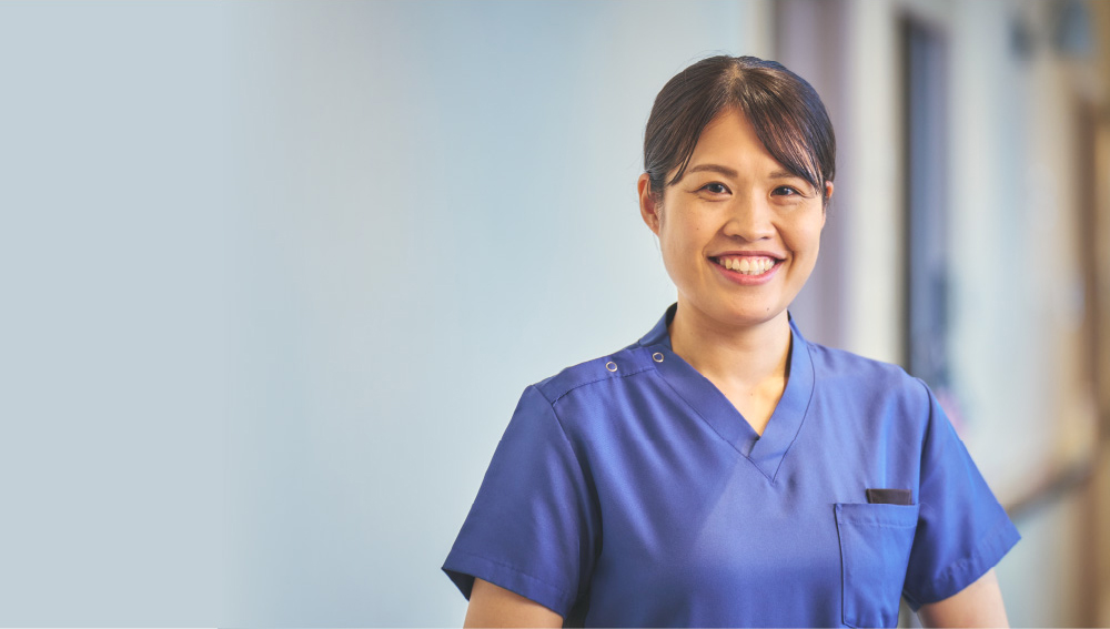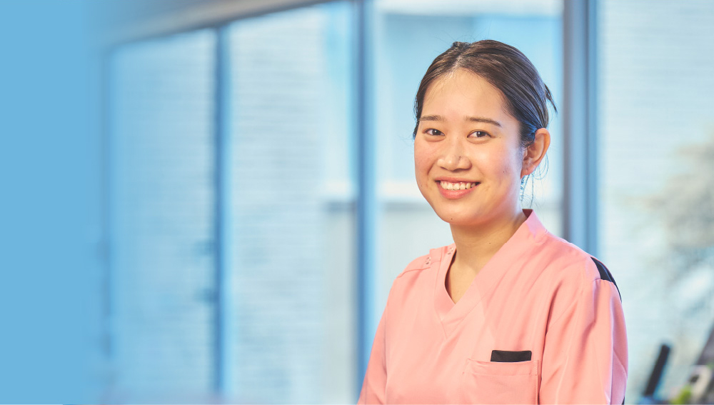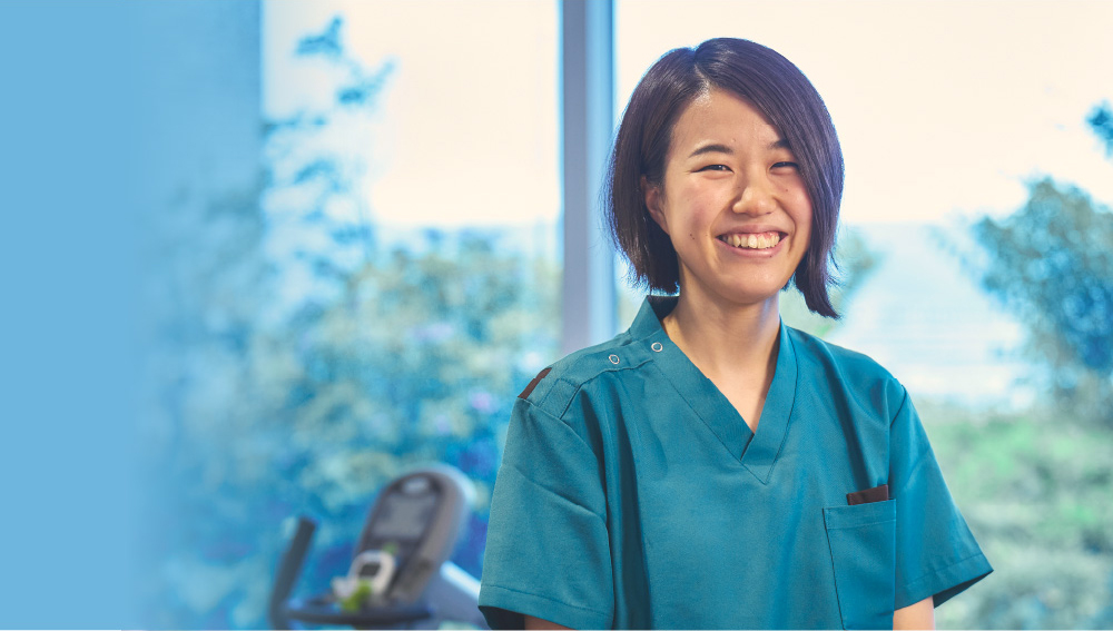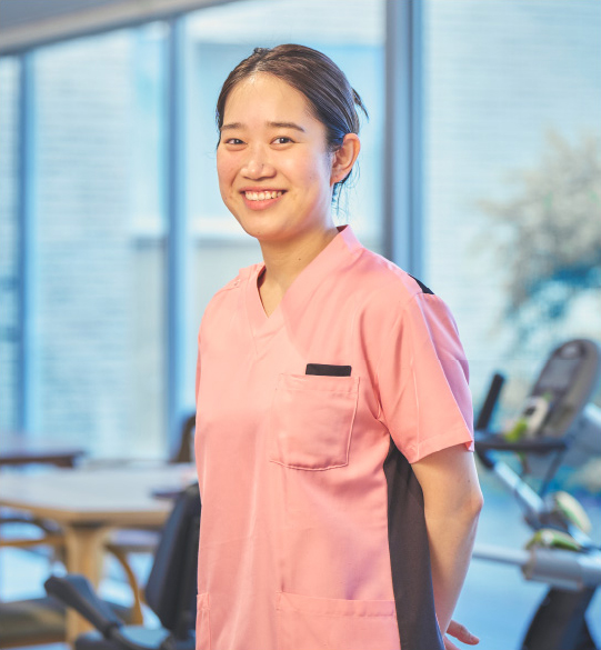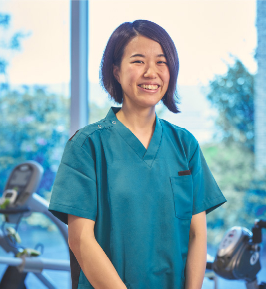 大学の実習で「しずおか整形外科病院」に来た際に、リハビリ室の明るい雰囲気や、スタッフの方々が笑顔で働く姿を見て、「私も一緒に働きたい!」と思い、医療法人社団アールアンドーへの就職を決めました。また、アールアンドオーには介護保険分野の「エスコートタウン静清」もあり、理学療法士として視野を広げることができるところも魅力だと感じました。職場では、患者さまの1日も早い回復のため、先輩スタッフと多職種で連携し、笑顔でリハビリを提供することを心掛けています。