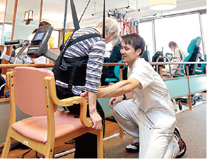 重力の負荷を軽減し、リハビリ初期の方の立ち上がりと歩行をサポートします。